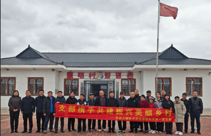 近日,吉林工程技术师范学院机关一支部赴延边州龙井市老头沟镇廉明村,与村党支部开展结对共建活动。学校党委副书记刘鹏飞带队,机关党委、机关一支部党员共12人参加。